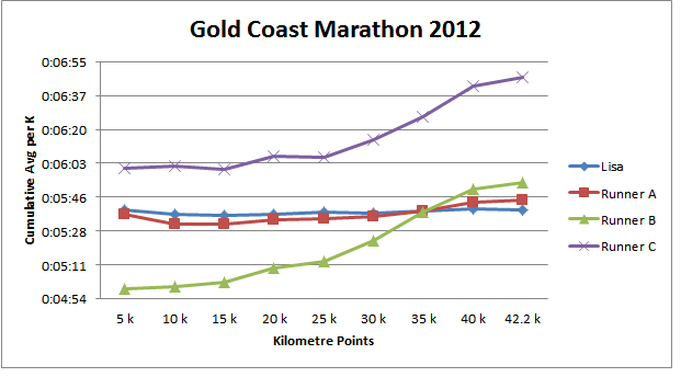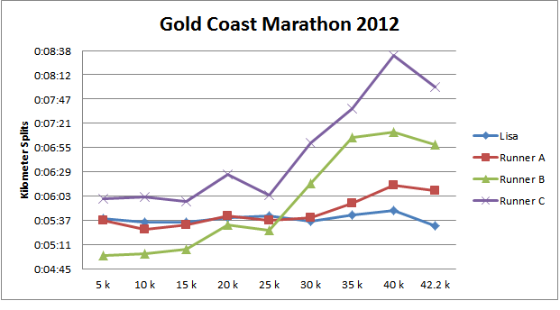 Recently Lisa completed the Gold Coast marathon, here is my overview of her training and race and my thoughts on pacing a race.